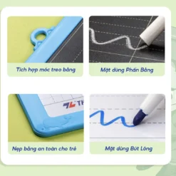 – Là loại bảng bộ, 1 mặt viết phấn, 1 mặt viết lông bảng, trên bảng có kẹp thêm 01 bút lông bảng có sẵn đồ bôi chuyên dành cho học sinh.