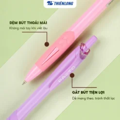 Bút được thiết kế ấn tượng, hiện đại, trẻ trung, màu sắc đa dạng và phong phú, thích hợp cho mọi đối tượng học sinh, sinh viên và nhân viên văn phòng.